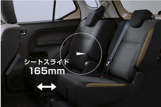 - スライド機構:後席は約165mmスライド。荷室拡大と足元優先を切り替え可能。